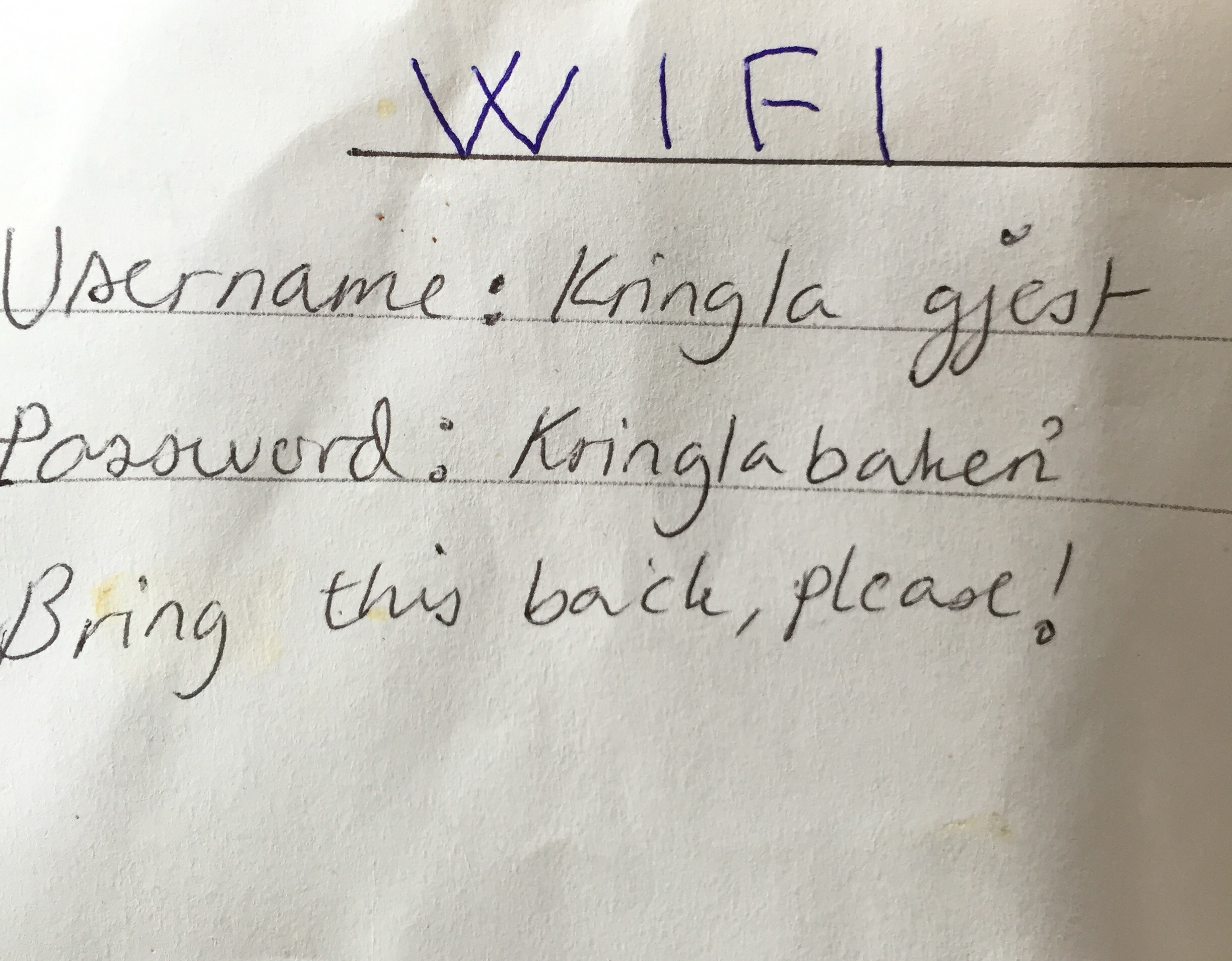 Nachdem das geklärt war, setzte ich mich in eine Bäckerei, kaufte mir nebst dem Kaffee drei norwegische Spezialitäten (u.a. Waffeln mit Karamell, omg) und schnappte mir das WLAN-Passwort.